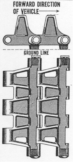 welded links?). First steel tread link, known as 'cuff design' (later designated