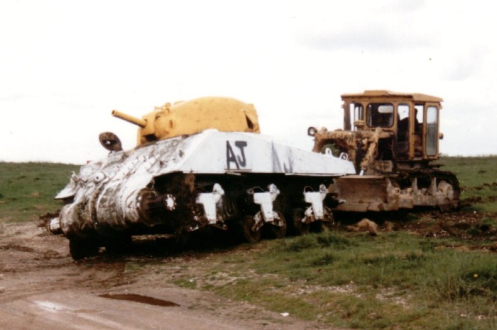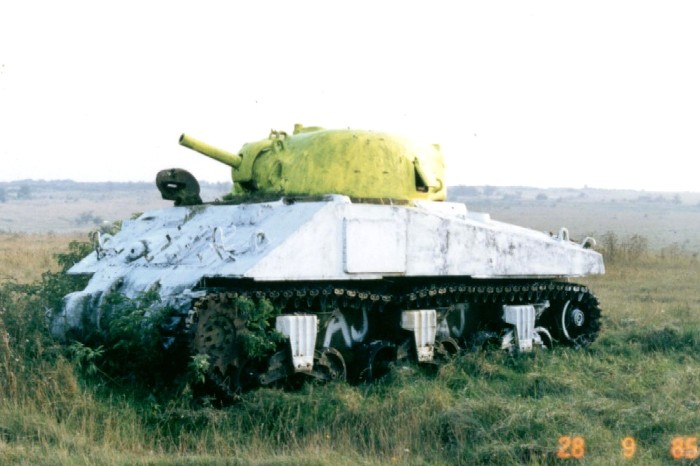 ![]() This Sherman was one of about 25, all M4A4, on an artillery range in the UK. This particular one, although looking good, had been hit on the right-hand side. This had cracked and bent the lower hull side and caused a lot of internal damage. The tank was situated very close to a road and this resulted in it being well robbed of parts but also it received numerous coats of paint to make it more visible. This of course protected the outside from corrosion very well. |