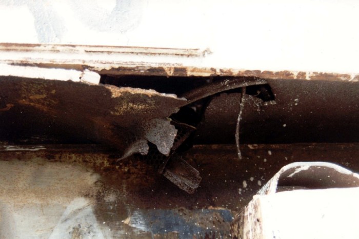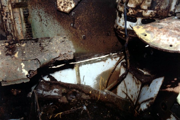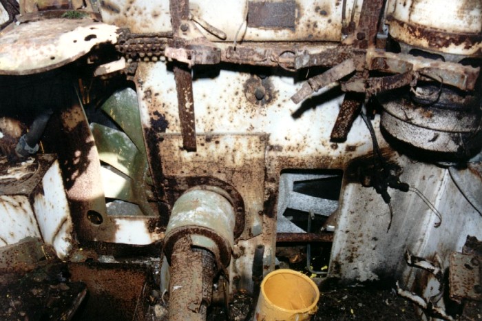 ![]() This removed the bogies, bent the lower side plate, engine bulkhead, floor and sponson plates, smashed the front engine mounting and mangled much of the interior. |