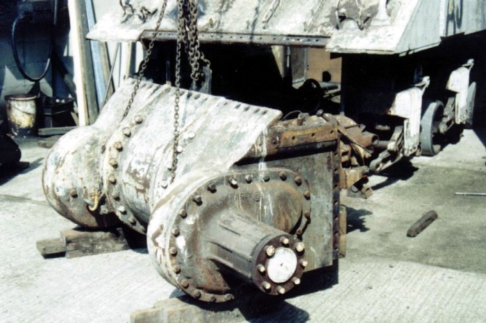 took off the remaining bogies prior to sandblasting.