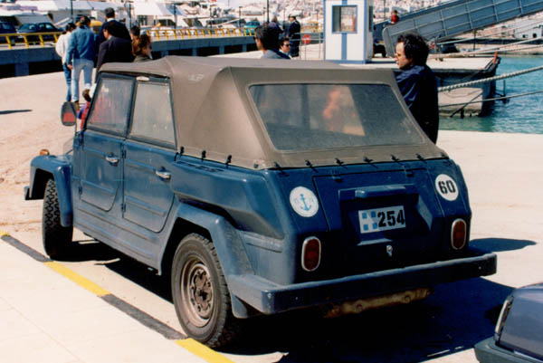 has the later 'elephant feet' rear lights. Military spec VW 181s normally
